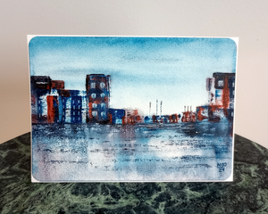 Original Watercolor Keepsake Card/painting - Gold & Indigo Fl...