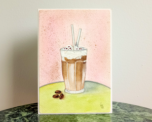 Original Hand Painted Watercolor Card/Painting - "Coffee Milk...